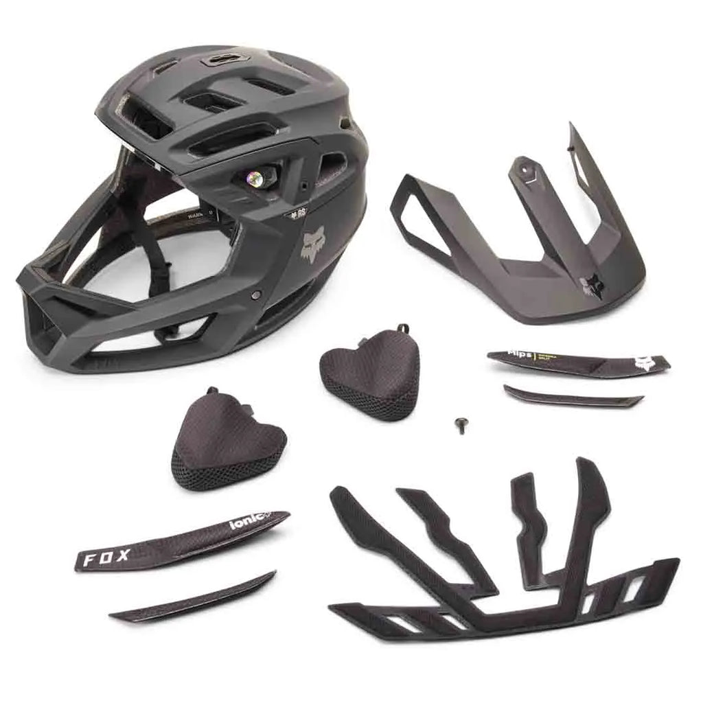 The Fox Proframe RS is a lightweight full-face helmet engineered for all-mountain and enduro riding. It features the advanced MIPS® Integra Split protection system with dual-density foam and a low-friction layer to reduce rotational forces during impacts. Enhanced ventilation keeps you cool on extended rides, while the Ionic+ antimicrobial liner and adjustable cheek pads ensure comfort and secure fit. The updated BOA® fit system provides micro-adjustability, and the Fidlock® magnetic chinstrap works seamlessly with gloves. The 3-position adjustable visor is goggle-compatible and includes a removable GoPro mount for capturing your rides.